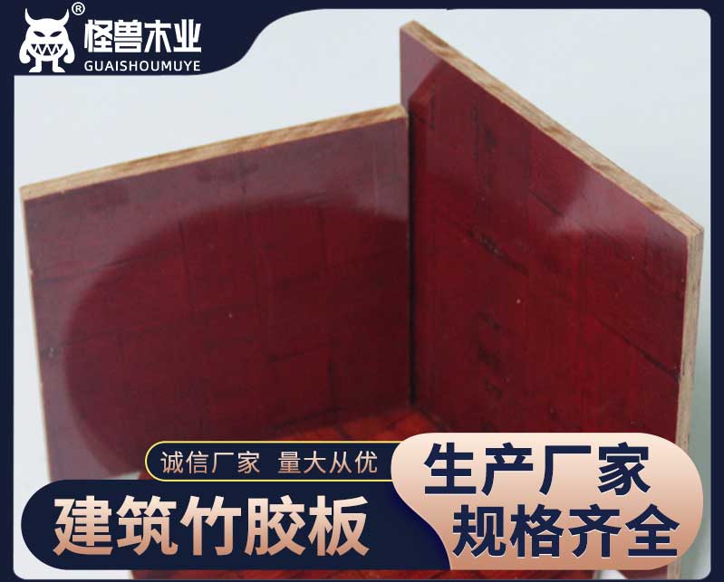 怪獸木業建筑竹膠板優勢:自有工廠建筑用竹膠板 使用用竹席,竹簾材料,經酚醛膠水浸膠,采用新型蒸氣散熱干燥設備,高溫熱壓而成,既耐用又省錢。竹膠板是以毛竹材料作主要架構和填充材料,經高壓成坯的建材。竹膠板,是高強覆膜橋梁板,建筑模板,及磚機托板等,竹膠板應用廣泛,深受用戶青睞。
